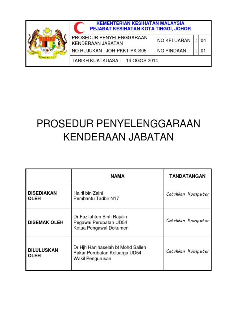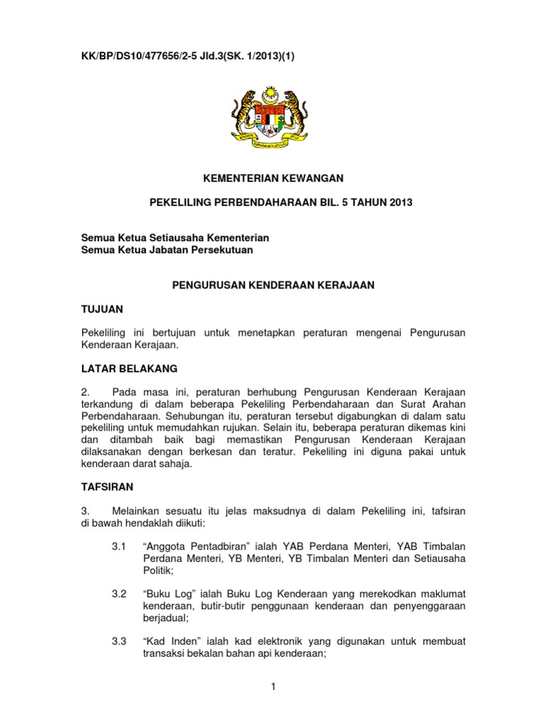 Agensi hendaklah mengambil langkah berjimat cermat dan melaksanakan perolehan kenderaan. Lemah penyelenggaraan kenderaan bukan sahaja boleh menimbulkan bahaya kepada pemandu dan penumpang malah kepada pengguna jalan raya yang lain Jawi et al. Kenderaan Jabatan digunakan untuk tujuan rasmi sahaja dengan kelulusan Pegawai Kenderaan.